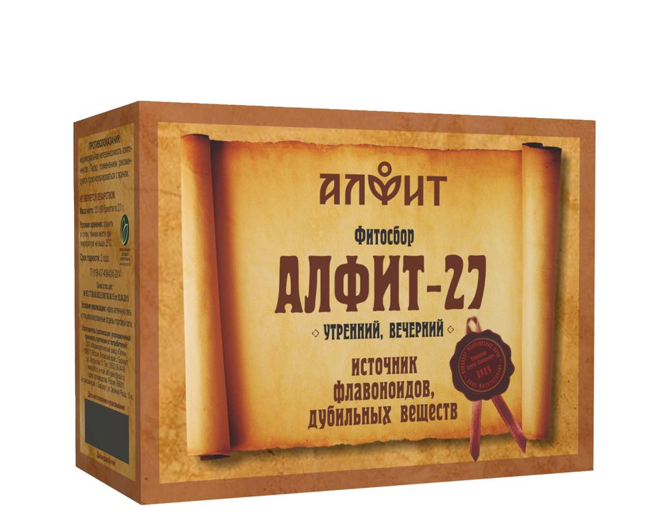 «Алфит 27» входит в серию фитосборов «Алфит», изготовленных из экологически чистых трав Горного Алтая, Кавказа и Приморья. А состав фитосборов разработан на основе народных рецептов траволечения, которые веками помогали людям. В научно обоснованных и сбалансированных рецептурах используется более 50 видов целебных растений.