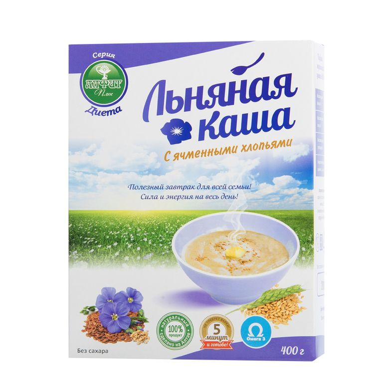 Льняная каша с ячменными хлопьями – это идеальный диетический продукт, который изготавливается из льняного семени, которое, как известно, обладает массой полезных свойств: является источником витаминов Е, А, В3, В1, В12, В6, микроэлементов – кальций, калий, фосфор, магний, медь, железо, марганец, цинк, хром, бор, натрий. Содержит нерастворимую и растворимую клетчатку, растительный белок, жирные кислоты (Омега-3, Омега-6 и Омега-9), большое количество антиоксидантов. Благодаря чему, при ежедневном применении, оказывает благотворное влияние на общее физиологическое состояние организма, насыщая его большим количеством витаминов, микро- и макроэлементов, эффективно активируя обменные процессы, помогая поддержать здоровье организма.